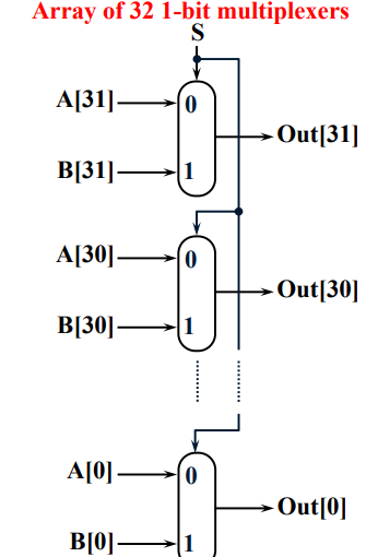 32bit wide multiplexer 는 실제로는 32 개의 1-bit multiplexer 들로 이루어진 array이다.