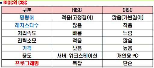 여기서 RISC와 CISC 의 차이는 Complex Instruction Set Computer 와 Reduced Instruction Set Computer