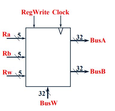 이 때, Read operation 은 enable 또는 clock signal 과 관련없이 read 되고 Ra Rb 에 의해 지정된 register 값을 BusA 와 BusB 를통해 출력하게 된다. Write operation 은 RegWrite 의 값( 0 or 1) 에 따라 BusW를 통해 write 한다.