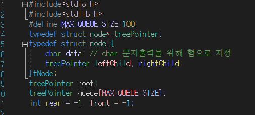 node->data - 'a'를 통해 인덱스값을 확인하게된다. (a는 0번인덱스, b는 1번인덱스 ... 이런식)