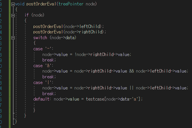 이렇게 값을 정해주고 root까지 거슬러 올라가며 이 순서쌍은 참인지 정하게 된다.