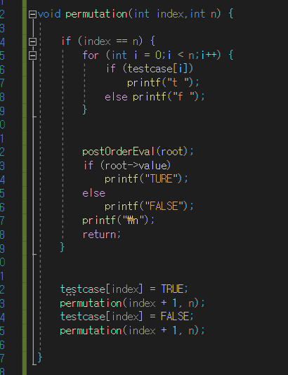 재귀함수를 통해 leafnode까지 내려간후, leafnode에는 true 혹은 false를 담게 된다.